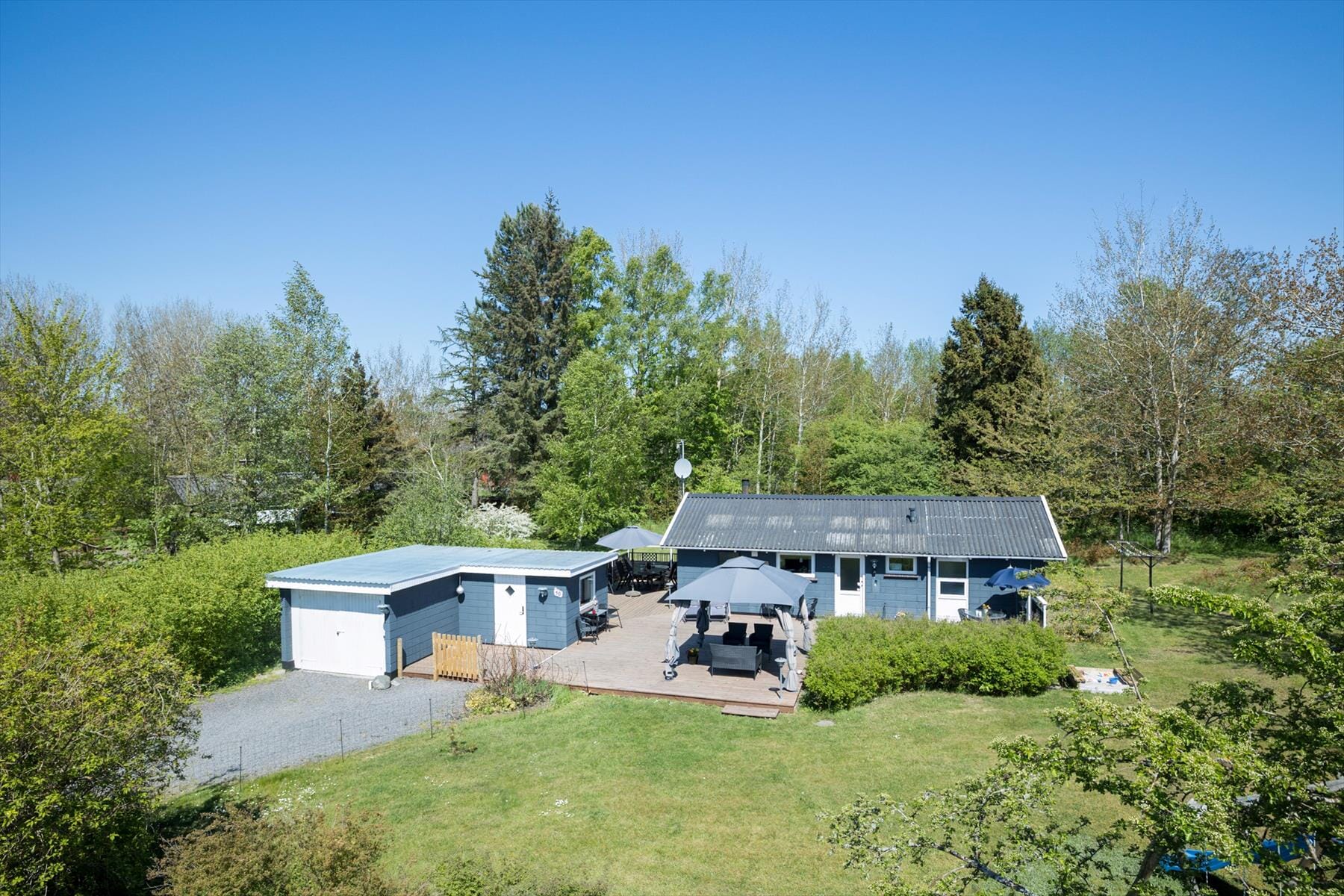 Boligen er på 58 m² og ligger på en 1 200 m² stor eiendom, med blant annet huske.
