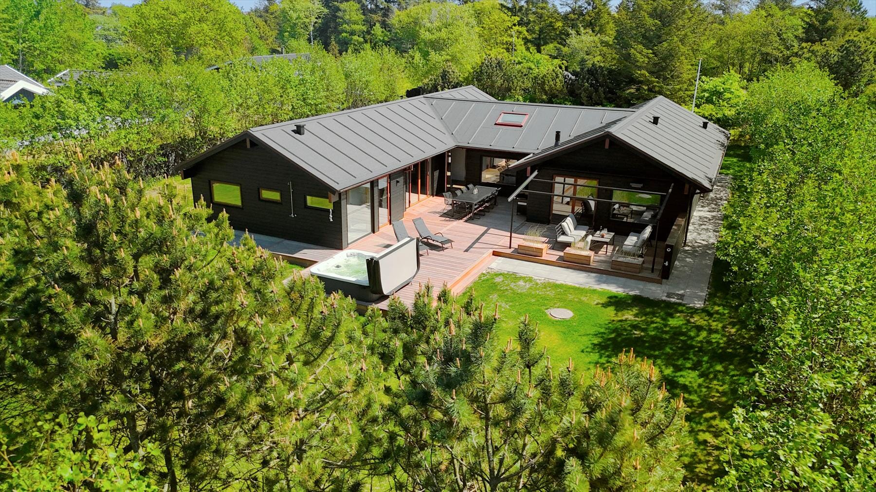 Boligen er på 220 m² og ligger på en 1 688 m² stor eiendom, med blant annet huske og trampoline.