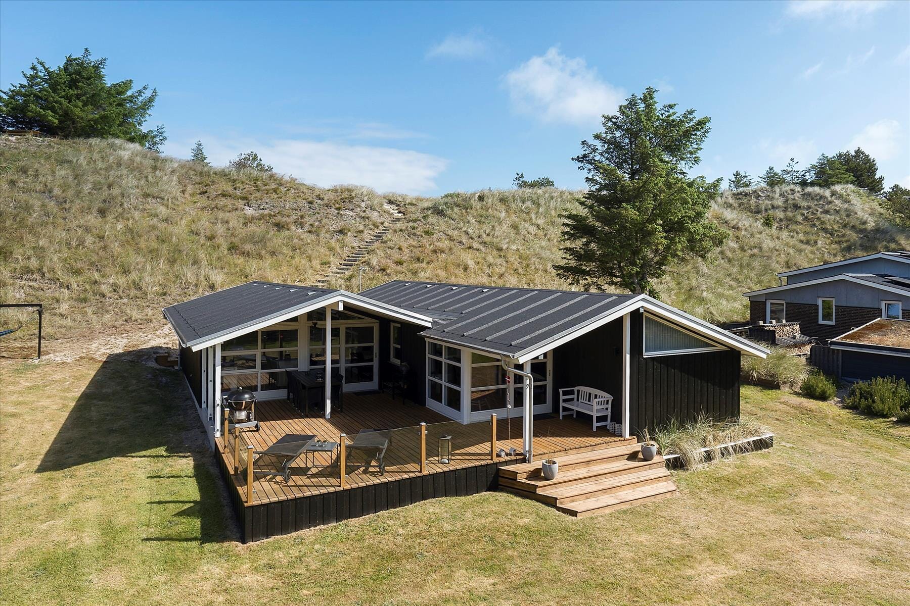 Boligen er på 92 m² og ligger på en 2 750 m² stor eiendom, med blant annet sandkasse.