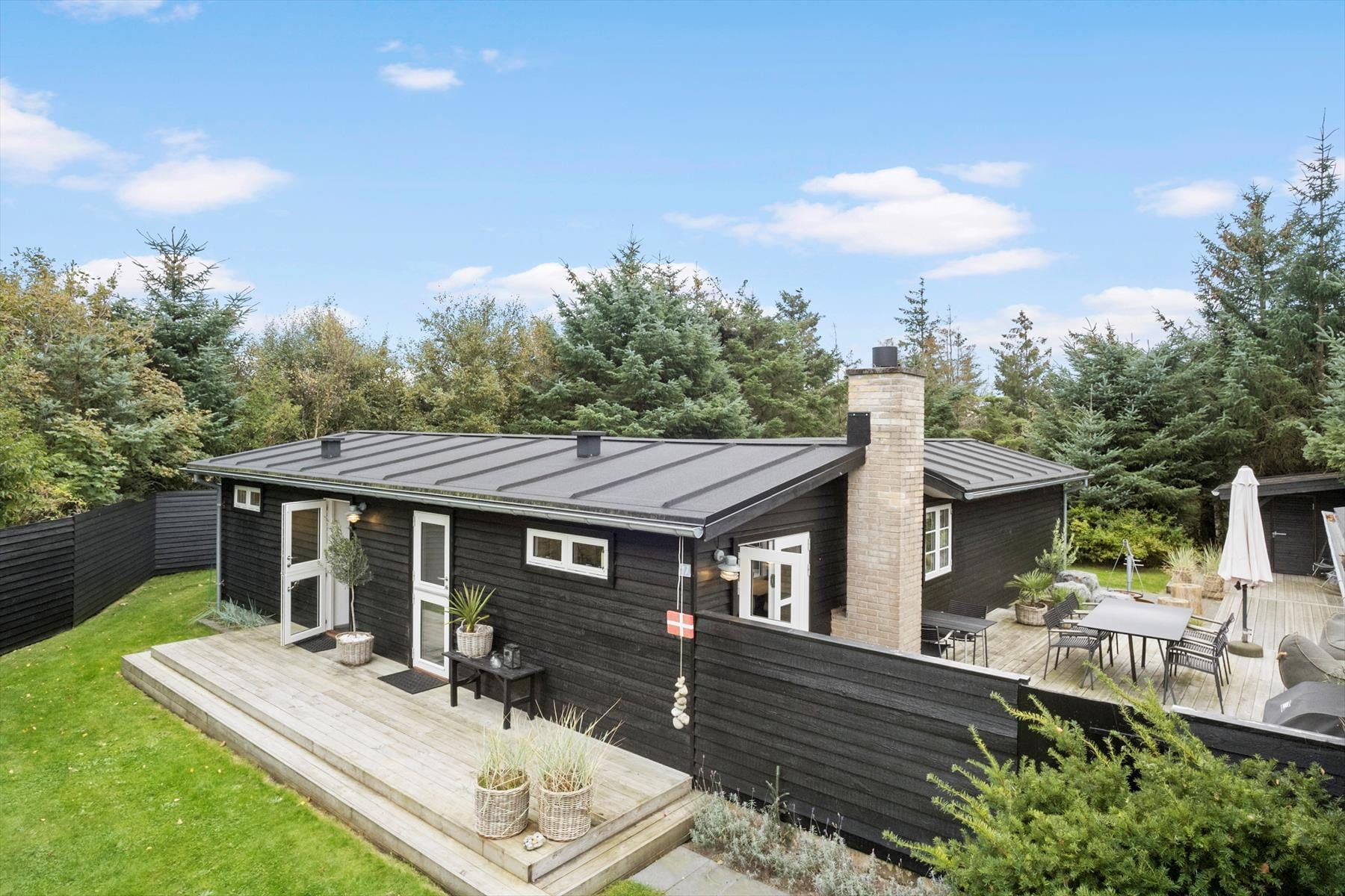 Boligen er på 82 m² og ligger på en 2 100 m² stor eiendom, med blant annet huske og trampoline.