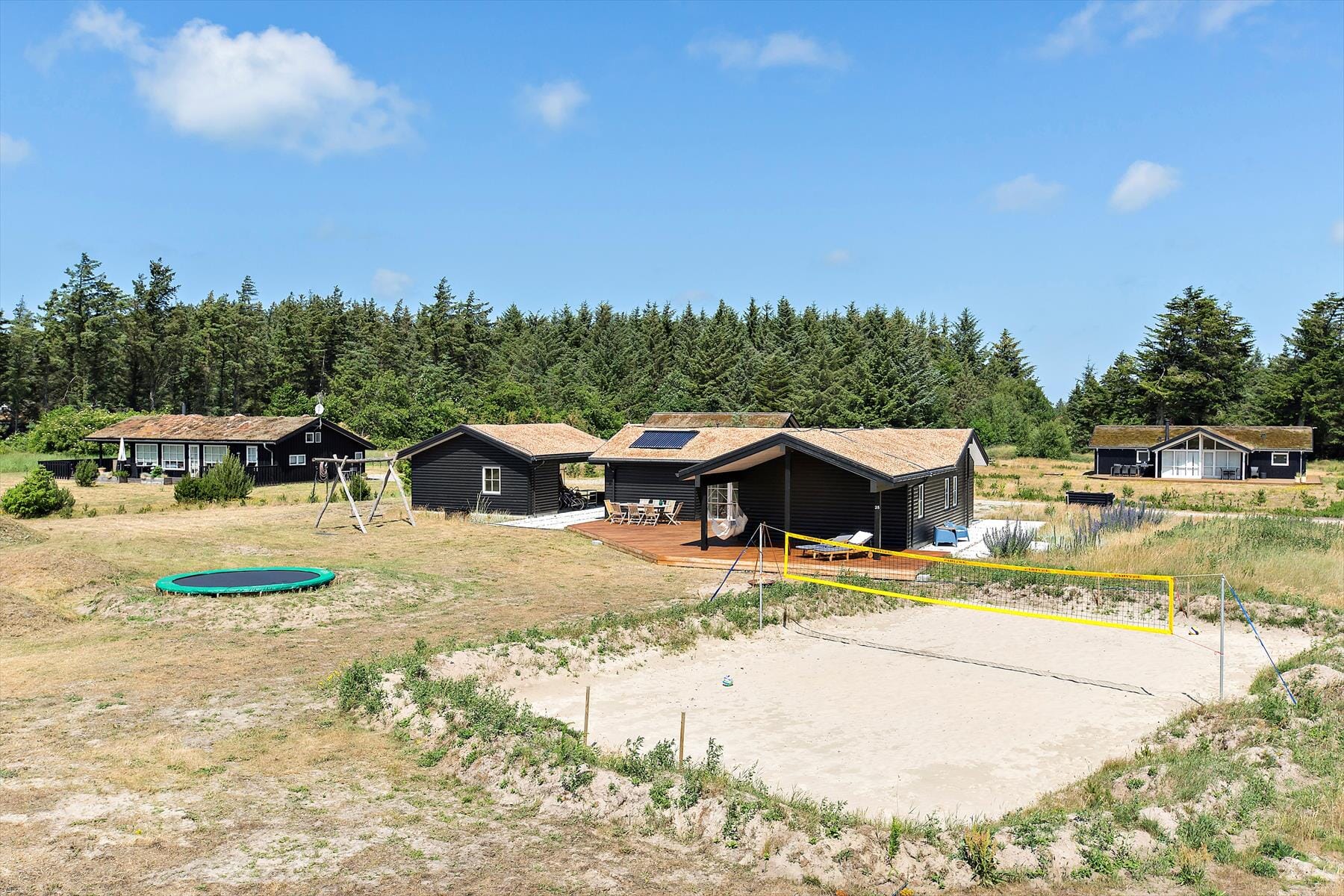 Boligen er på 118 m² og ligger på en 2 533 m² stor eiendom, med blant annet huske og trampoline.