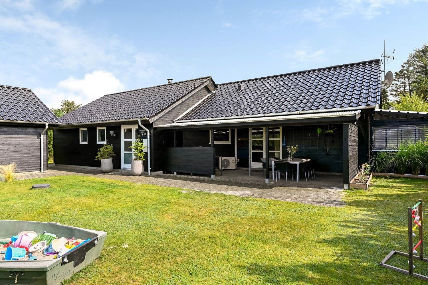 Boligen er på 123 m² og ligger på en 1 203 m² stor eiendom, med blant annet huske og sandkasse.