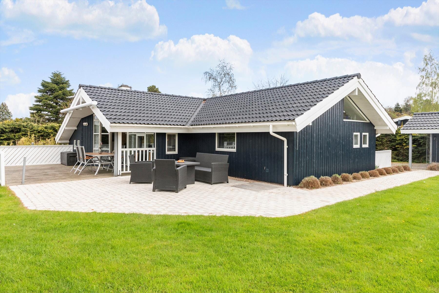 Boligen er på 89 m² og ligger på en 1 100 m² stor eiendom, med blant annet huske og sandkasse.