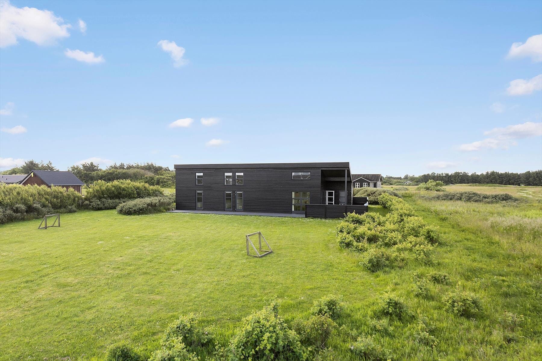 Boligen er på 125 m² og ligger på en 2 261 m² stor eiendom, med blant annet huske og sandkasse.
