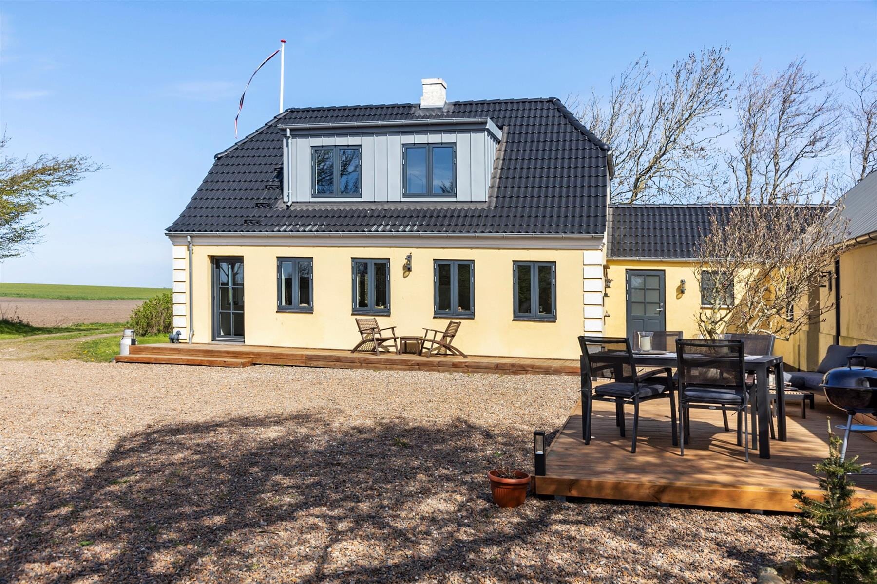 Boligen er på 140 m² og ligger på en 3 000 m² stor eiendom.