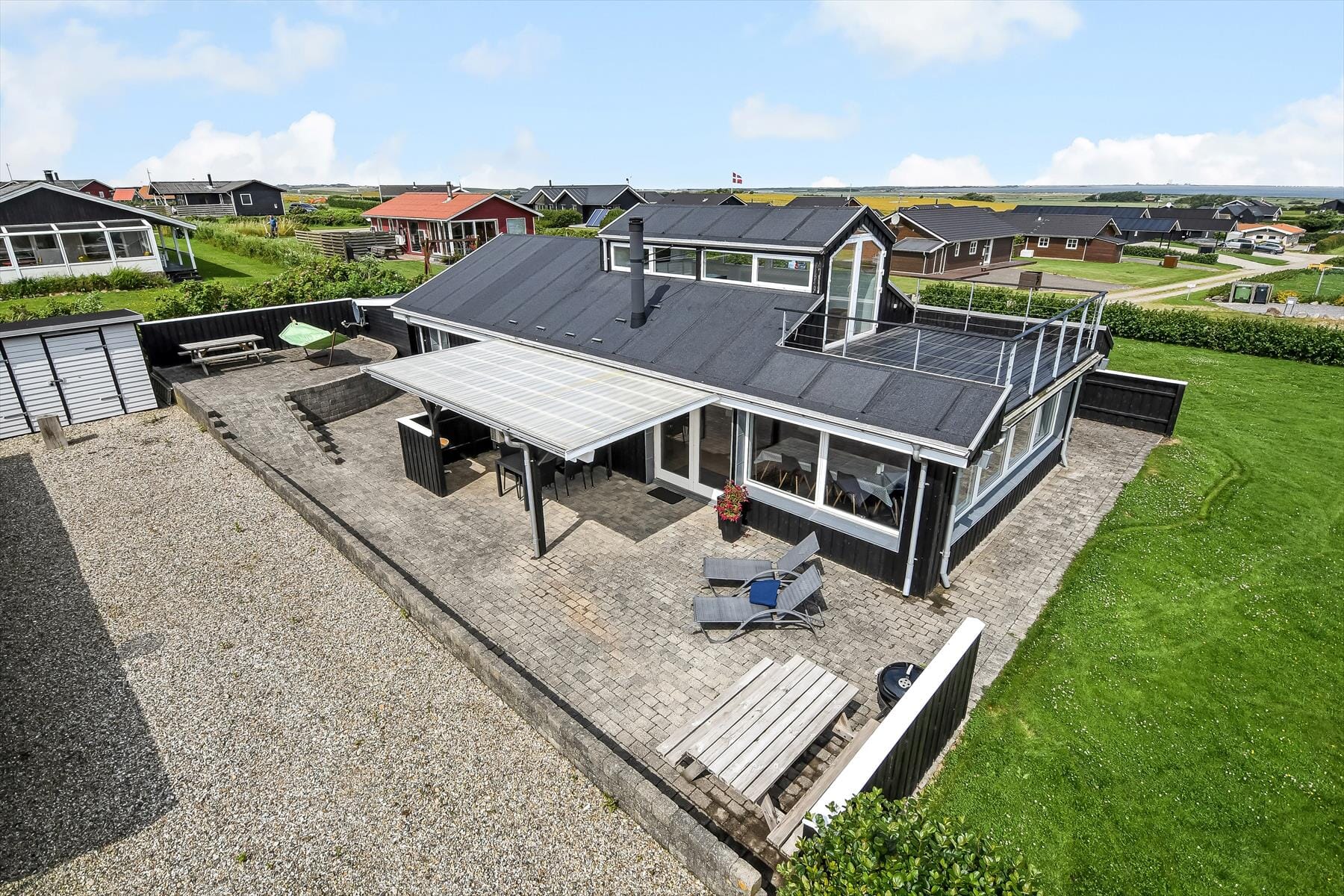 Sommerhus med panoramaudsigt og tagterrasse – tæt på stranden på Gjellerodde