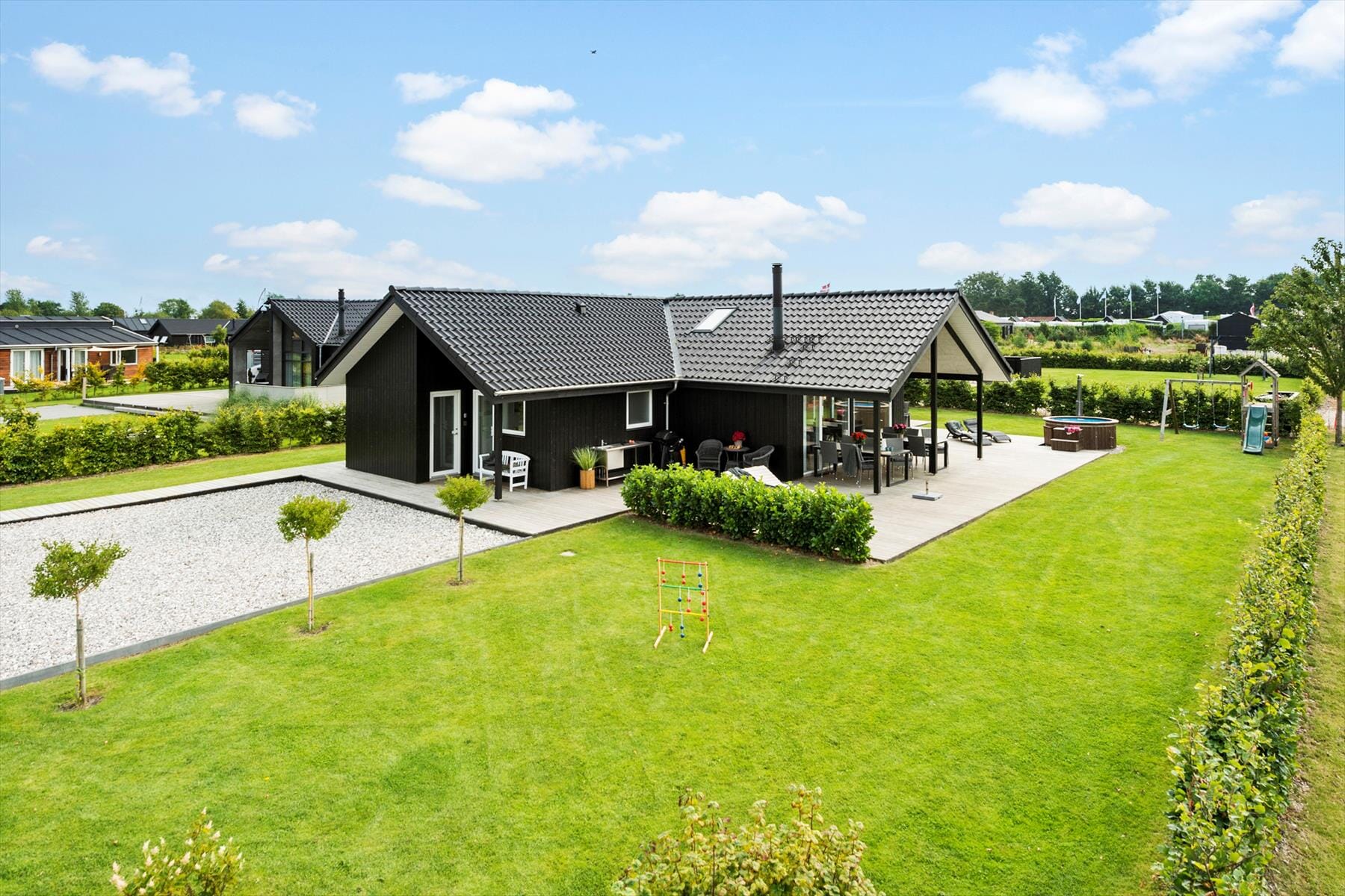 Boligen er på 125 m² og ligger på en 833 m² stor eiendom, med blant annet huske og sandkasse.