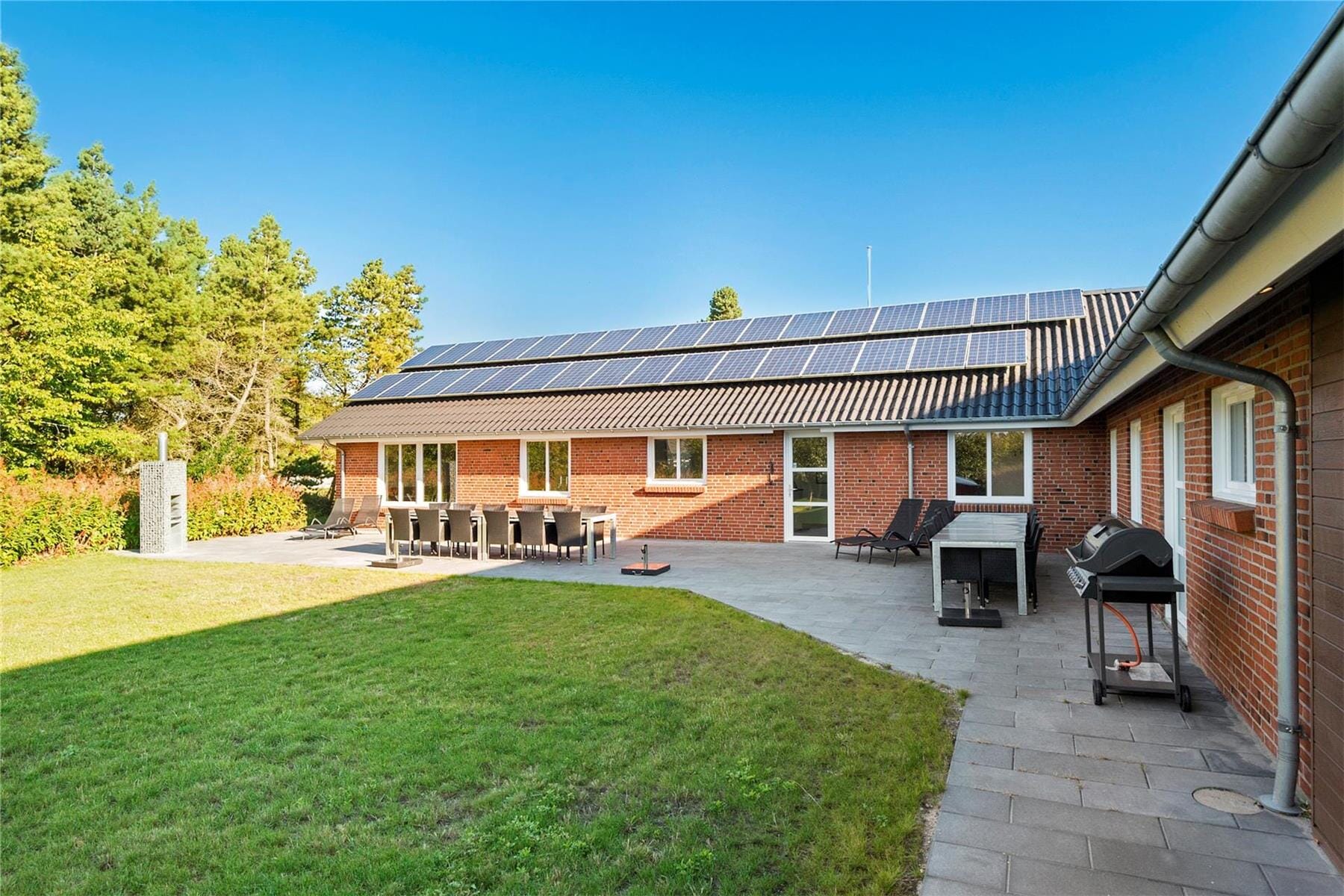 Boligen er på 298 m² og ligger på en 2 500 m² stor eiendom, med blant annet huske.