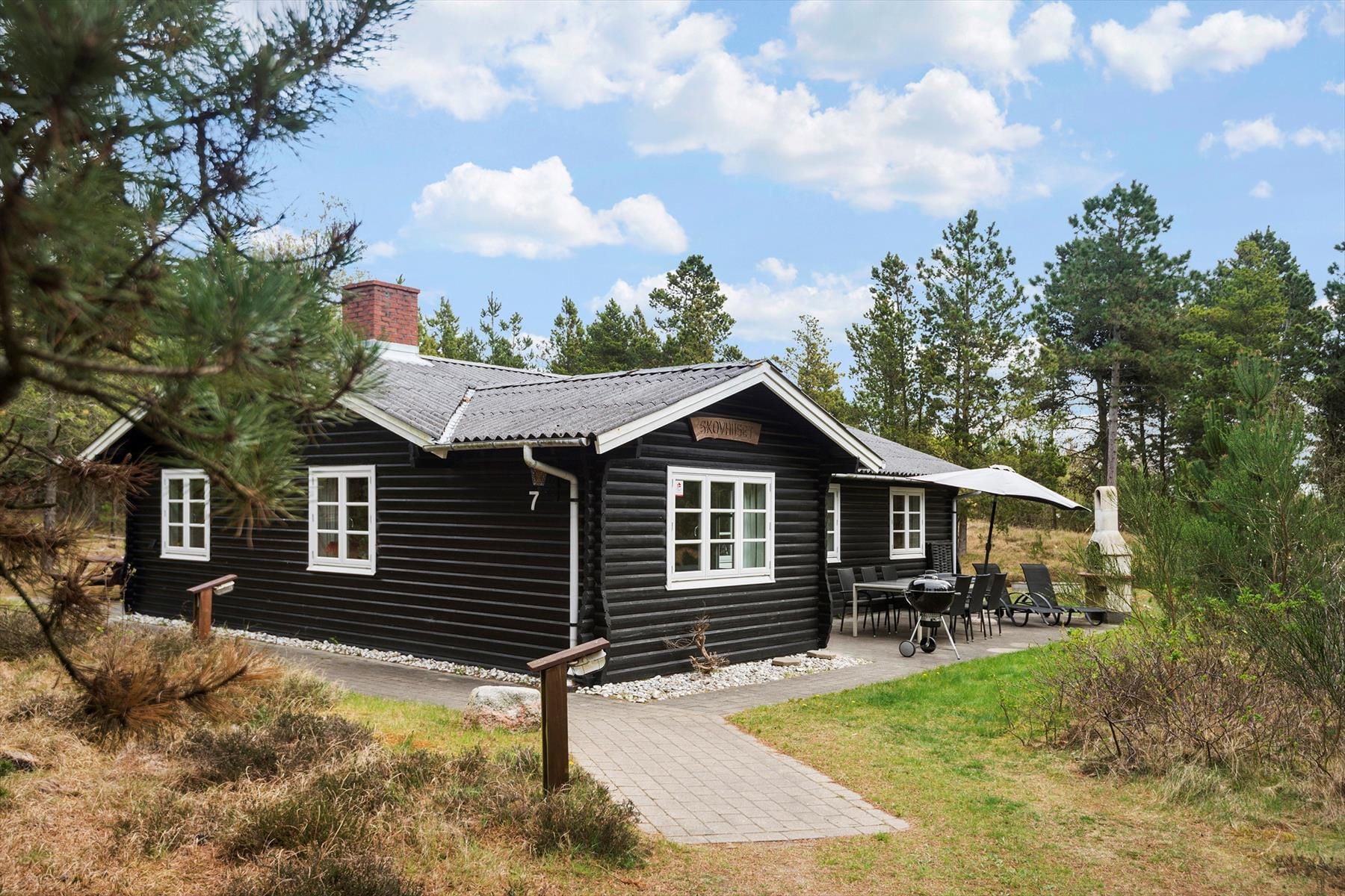 Boligen er på 96 m² og ligger på en 2 500 m² stor eiendom, med blant annet sandkasse.