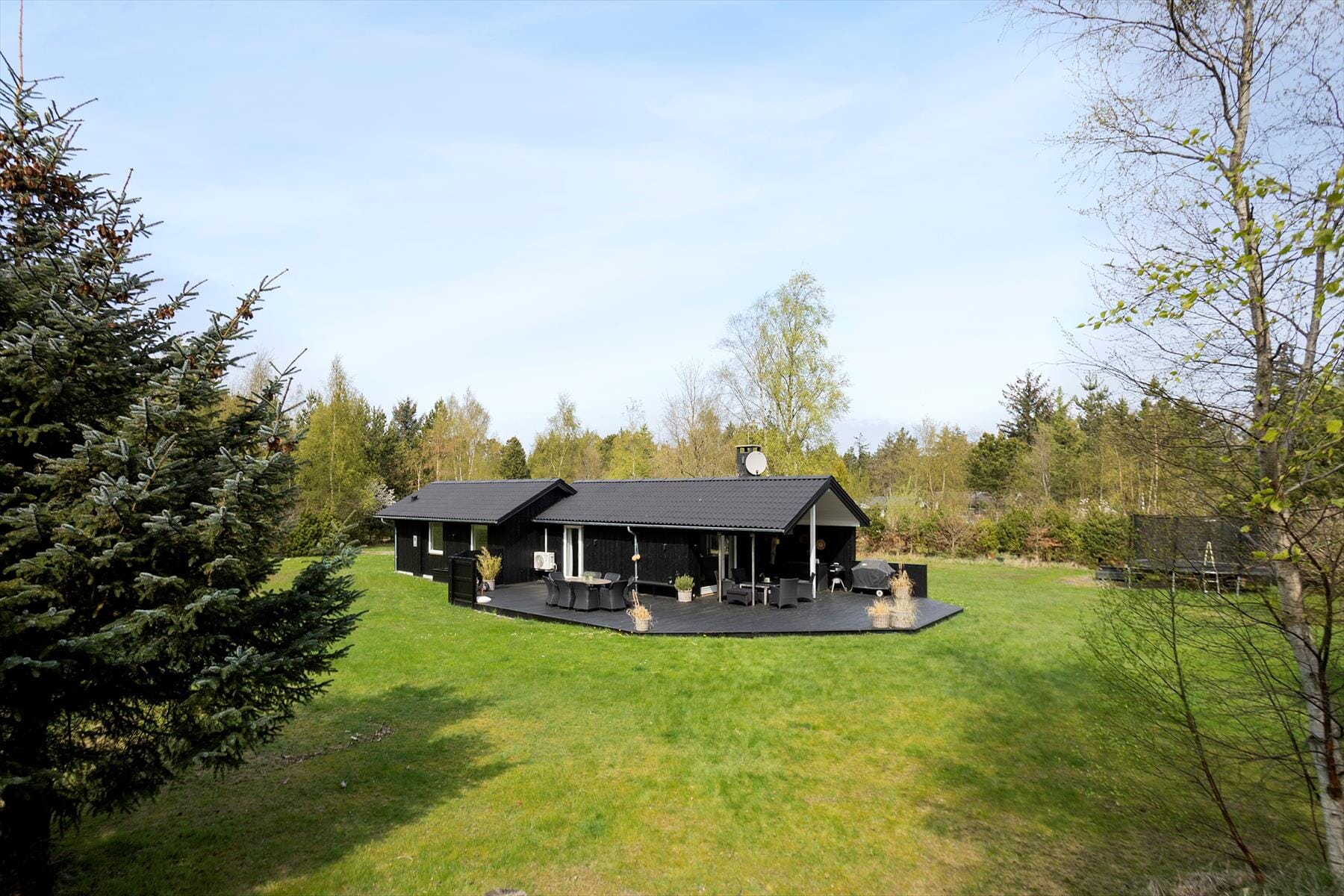 Boligen er på 90 m² og ligger på en 2 507 m² stor eiendom, med blant annet huske og trampoline.