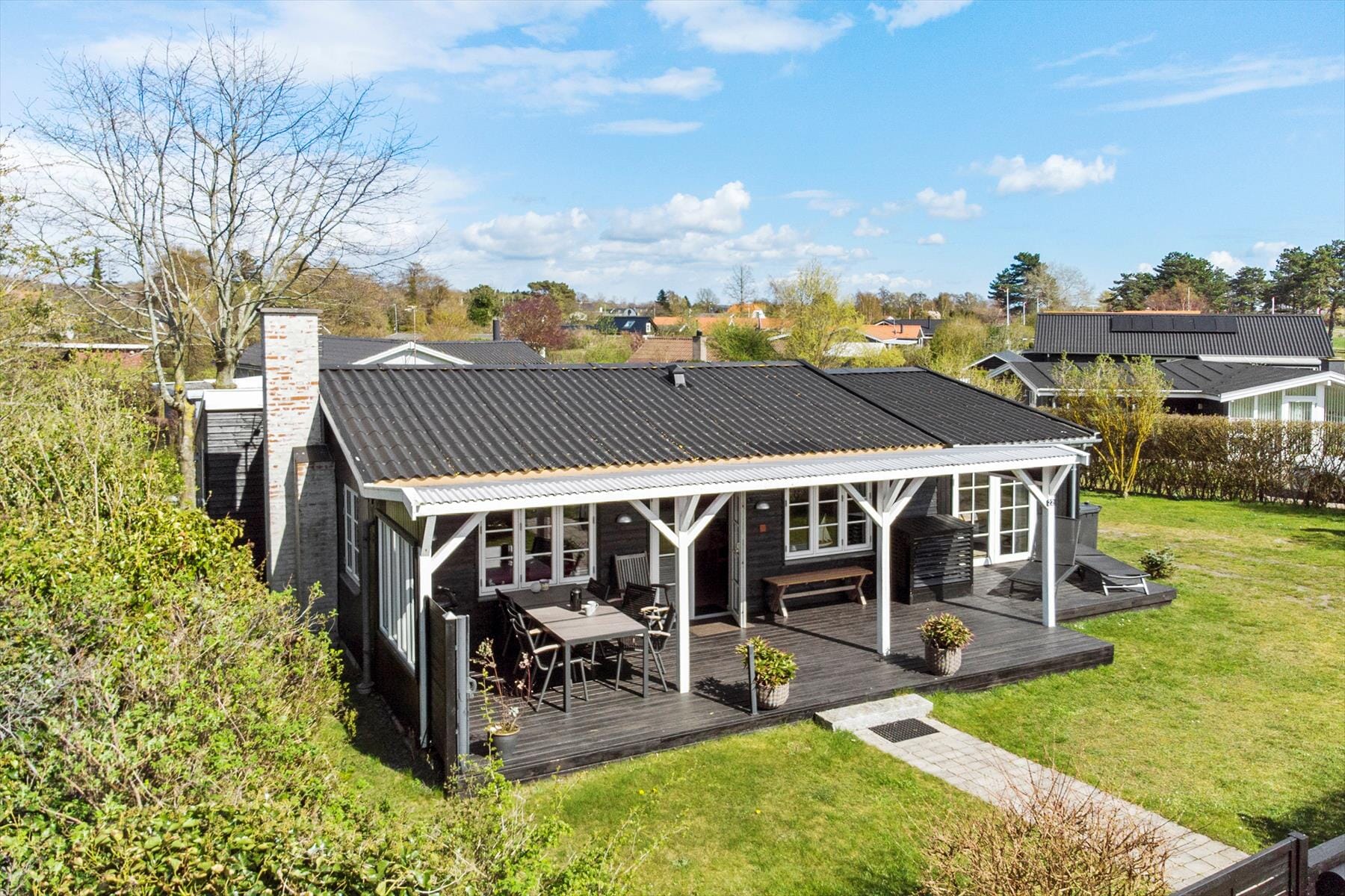 Huset ligger 100 meter fra Ore Strand hvor der er et stort grønt areal og badebro lige i nærheden. Stor delvis overdækket terrasse med havemøbler. Herfra fantastisk havudsigt . Indhegnet grund med have på ca. 516 m2. Grill forefindes.