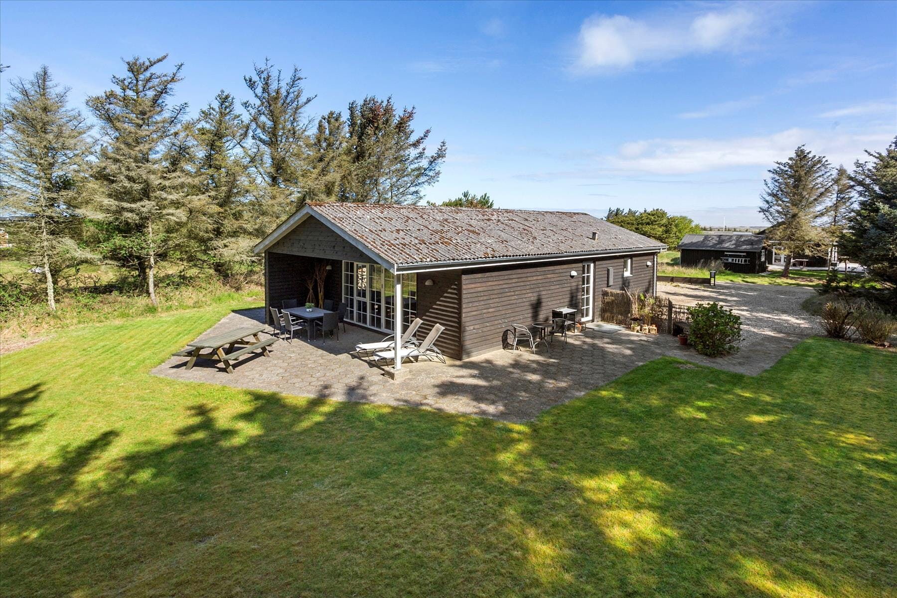 Boligen er på 83 m² og ligger på en 1 300 m² stor eiendom, med blant annet huske og sandkasse.