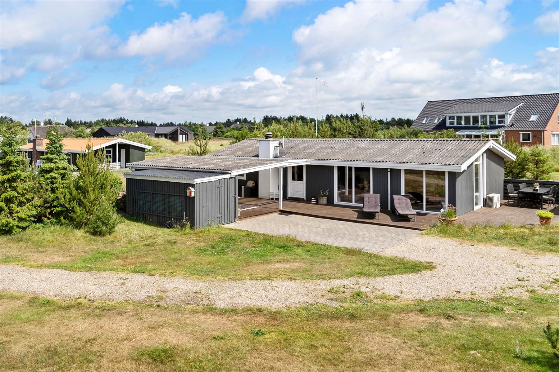 Boligen er på 80 m² og ligger på en 1 200 m² stor eiendom, med blant annet huske.