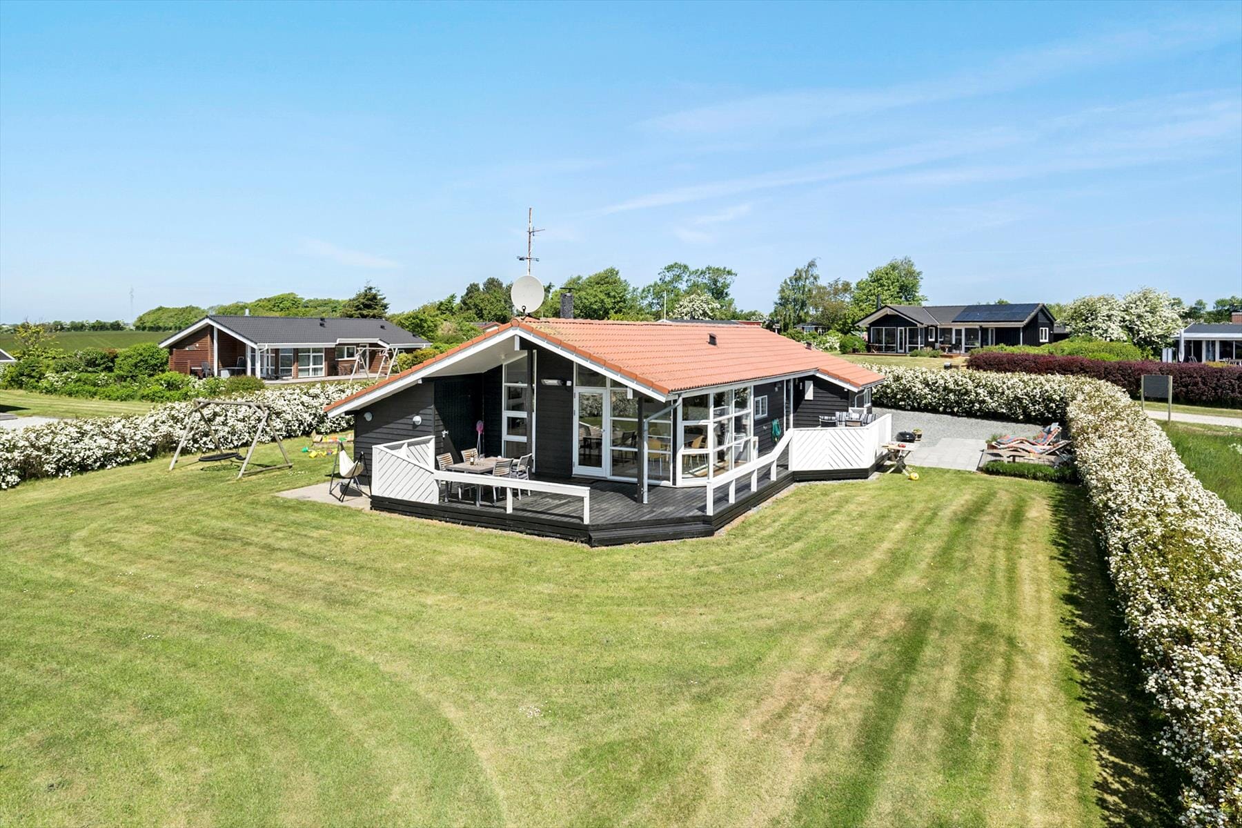 Boligen er på 95 m² og ligger på en 1 300 m² stor eiendom, med blant annet huske og sandkasse.