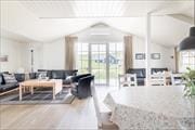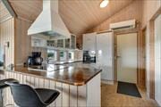 Sommerhuset er lyst og indbydende med en enkel indretning, der giver plads til at nyde ferien fuldt ud. De store vinduer i stuen lader dagslyset strømme ind og giver udsigt til den omkringliggende natur. Her kan du samles med familien foran brændeovnen på kølige dage eller nyde en god film på fladskærms-tv’et. Køkkenet ligger i åben forbindelse med stuen og giver gode muligheder for at kokkerere og hygge sig sammen – måske med en hjemmelavet middag baseret på friske, lokale råvarer. Soveværelserne, der er holdt i lyse toner, sikrer en god nats søvn, så du er klar til at udforske alt, hvad området har at byde på.